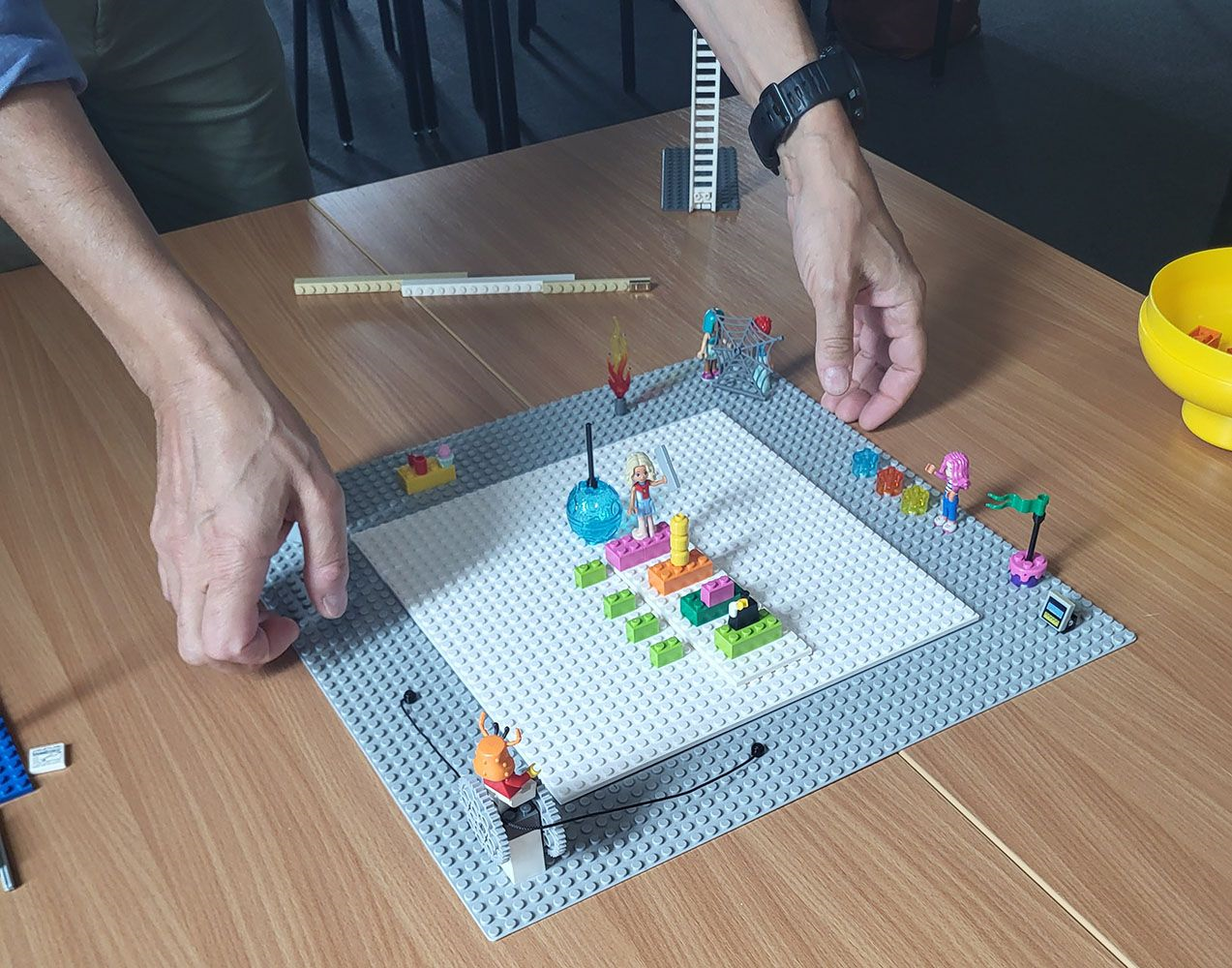 One of the things I like about working at Bath Uni is the way random conversations over coffee result in unexpected opportunities. For example, I’ve been using Lego® Serious Play®, a meeting facilitation technique, that works just as well for conversations where you are talking to yourself. I use it in a very basic way, to help order my thoughts. A year ago, during a departmental coffee meet-up, there was discussion about getting some Lego for the department. I mentioned LSP which no one else had heard of, but some became curious about. This led to me applying and getting some teaching development funds to pilot LSP in personal tutor group meetings where there are often long awkward silences. We tried it and it was very effective and the students really enjoyed it. I reported back at a departmental teaching day and a faculty community of practice. There was coffee available at both. A few coffee drinkers in the department tried it for themselves after my presentation and also reported great success. A few weeks ago, I noticed someone in our Research and Innovation Services was offering a LSP session for PhD students to help with problem solving. I got in touch and suggested we have a coffee and compare notes. Just like me, Annali based what she was doing on the original open source guide from Lego. We agreed we should seek out other LSP users in the university and form a Community of Practice. For those that don’t know, a CoP is a group focused on a specific activity where people get together to share ideas, experience, etc. Usually over coffee. The other thing that happened as a result of that discussion was that I got invited to attend a proper Lego Serious Play facilitator training workshop. RIS was arranging with an external training company, SERIOUSWORK, to host an on campus workshop to up-skill some of their staff and they made a space for me. Thank you RIS. Seven of us got to spend two days learning and practicing under the expert guidance of Sean Blair who shared his knowledge, experience and insights going way beyond the basic individual model building I had been doing, in to the realms of shared model building. Thank you Sean.